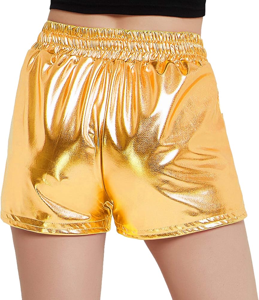 Functional:The shiny metallic shorts come with practical side pockets,high waisted to provide a comfortable fit and a stylish look.
