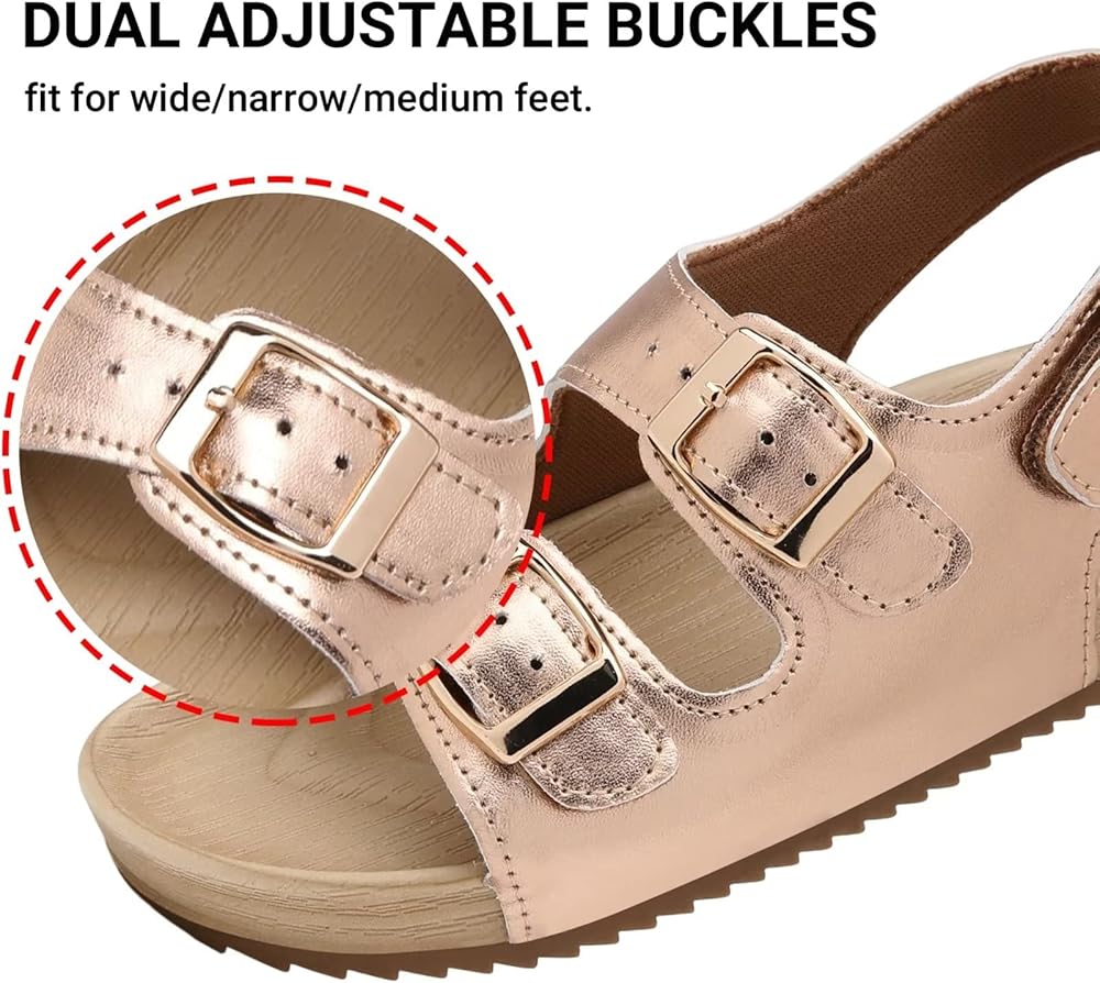 - Dual adjustable buckles at upper for more secure and fashion. These summer sandals pair perfectly with dresses, shirts, pants, and more.