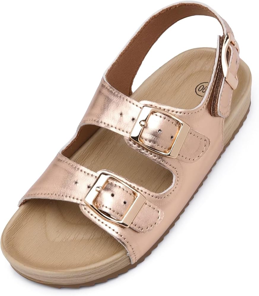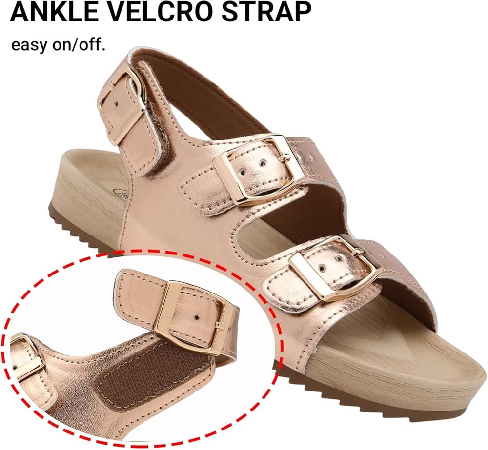 Girls Boys Sandal Adjustable Double Buckle Casual Flat Open Toe Lightweight Summer Shoes Hook Loop Sandal for Toddler Little Big Kid