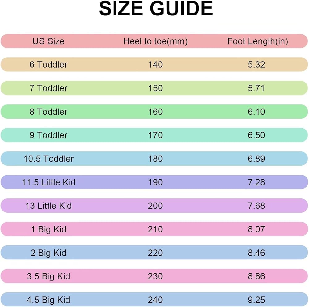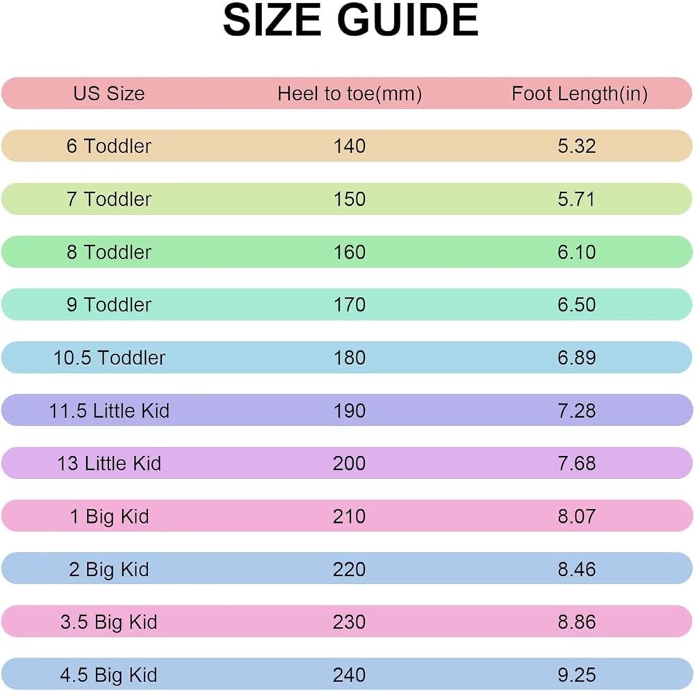 Little kids' shoe size conversion (4-7 Years)