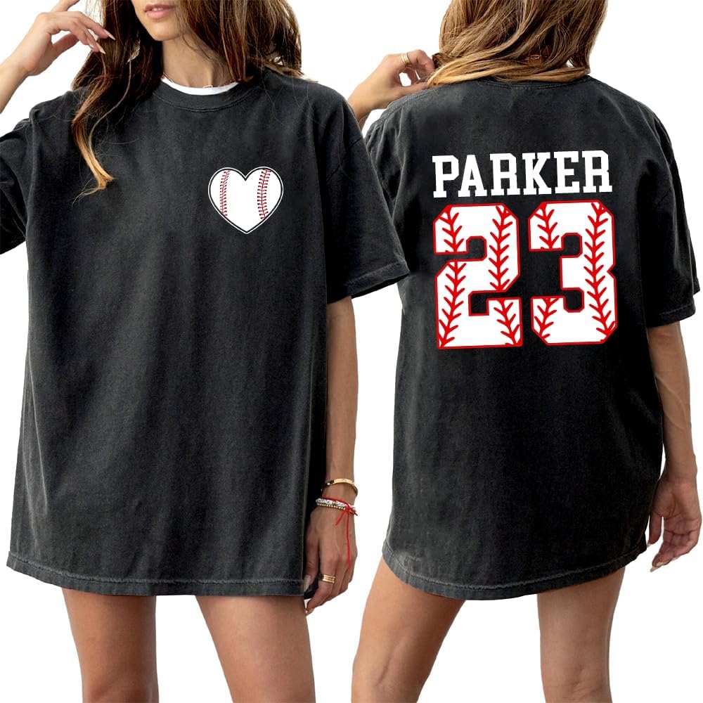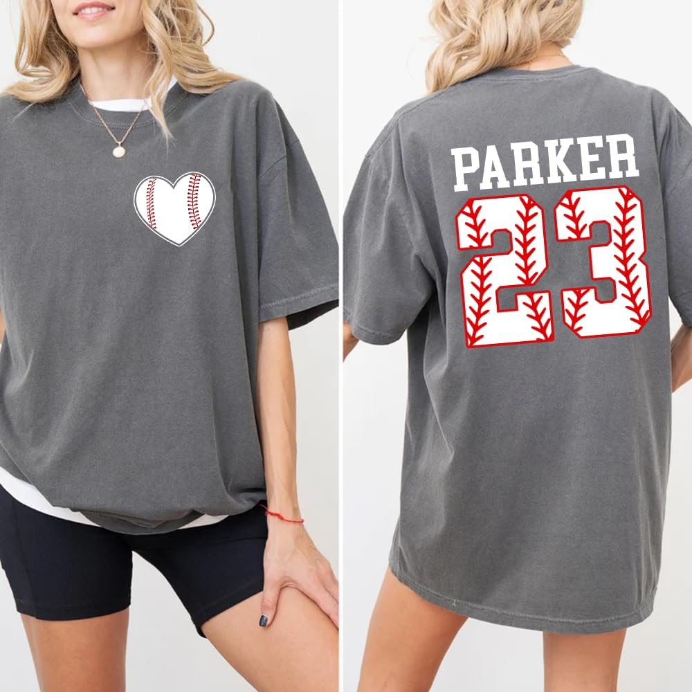 ✔ Stylish Baseball-Themed Design – Features a heart-shaped baseball stitch graphic on the front and bold custom name & number with red stitching effect on the back.