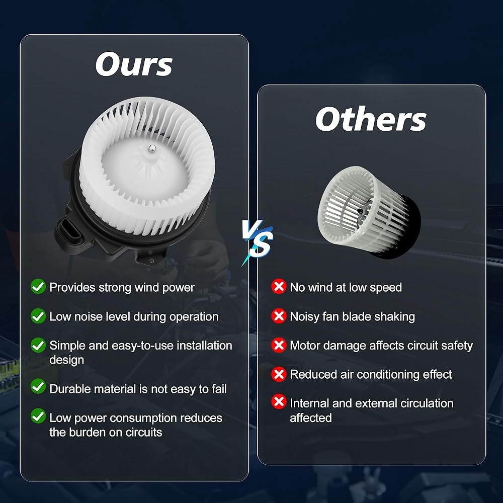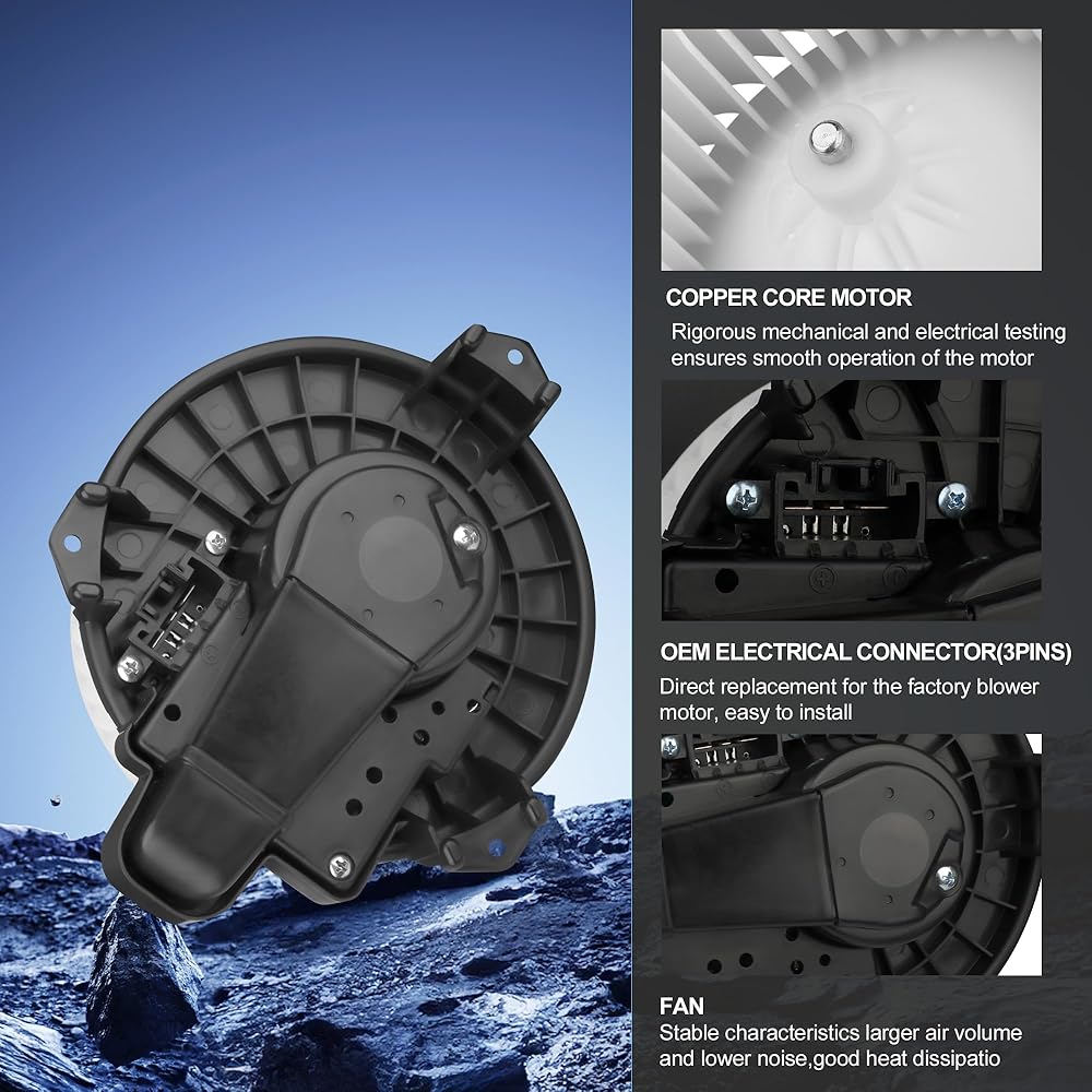 [Enhanced Blower Motor]: If your automotive air conditioning system are experiencing this problems that weak airflow from vents or unusual noises or vibrations when blower is turned on, you need to replace your ac heater blower motor Please check the “Amazon Confirmed Fit” on top of the page and confirm the part number together to match your vehicle and make sure get the the correct blower motor.