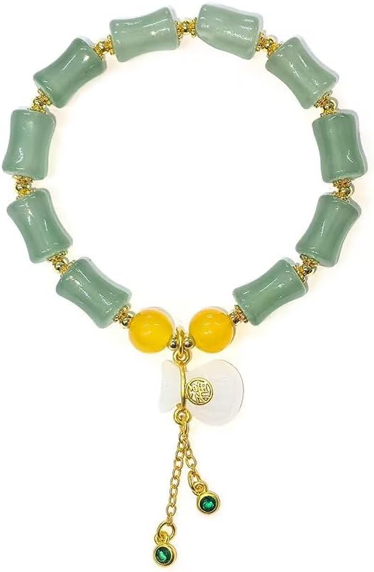 Bamboo Bracelet Jade Stones Lucky Money Bag Pendant Charm Stretch Beaded Bracelets for Women fengshui Jewelry
