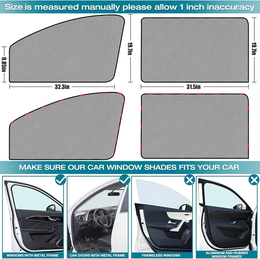 The ZATOOTO Car Mesh Sunshade is the ideal solution for creating a comfortable, safe, and private environment inside your car. Made with high-quality mesh material, it ensures excellent breathability while blocking out harmful UV rays, keeping the interior of your car cool and protected from sun damage. This sunshade is perfect for a variety of uses, including camping, traveling, or even napping in the car. With three fabric options to choose from, you can select the level of privacy and visibility that best suits your needs. From highly transparent fabrics for light to more opaque options for complete privacy, ZATOOTO allows you to create the ideal atmosphere inside your car. Installation is quick and easy, as the sunshade attaches to your car window with strong magnets. No tools are required, and even in windy conditions or at high speeds, the magnetic attachment ensures it stays securely in place. It's a hassle-free solution that saves you time and effort. This versatile sunshade is perfect for a wide range of scenarios, from long road trips and camping adventures to providing a peaceful and comfortable space for your baby, pets, or passengers. Whether you need UV protection, cooling, or privacy, ZATOOTO has you covered. Buying Tip: Before purchasing, please ensure that your car windows are made of ferrous materials that can attract magnets. We recommend testing your car window with a magnet. If the magnet does not stick, the product is not suitable for your vehicle. This product is a universal fit, compatible with most vehicle models, but may not be a perfect fit for all. Please ensure compatibility before making your purchase.