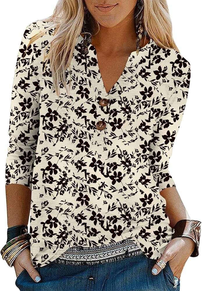Feature: Western blouses for women, cute henley v neck, 3/4 sleeve tops for women, cowboy chic attire for women. Loose fit, western graphic shirts, basic womens tops, simple casual style, easy to dress up or dress down, trendy and cute