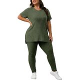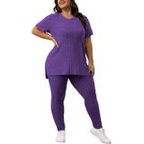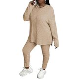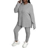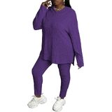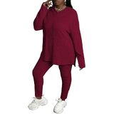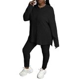 Feature: Plus Size Sweatsuits For Women Sets Hoodie And Stretch Sweatpants, Pullover, Splits on both sides, Plus Size Casual Sportswear Suit, Cute Plus Size Ladies Fall Lounge Jogging Suits .