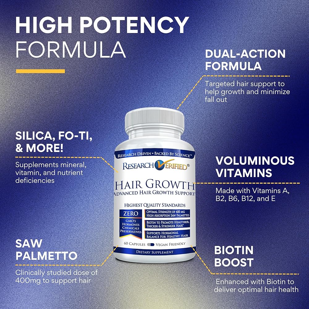 Research Verified Hair Growth Support - with Biotin, DHT Blockers & Vitamins - Hair Growth and Hair Loss Prevention, 1 Bottle (1 Month Supply)