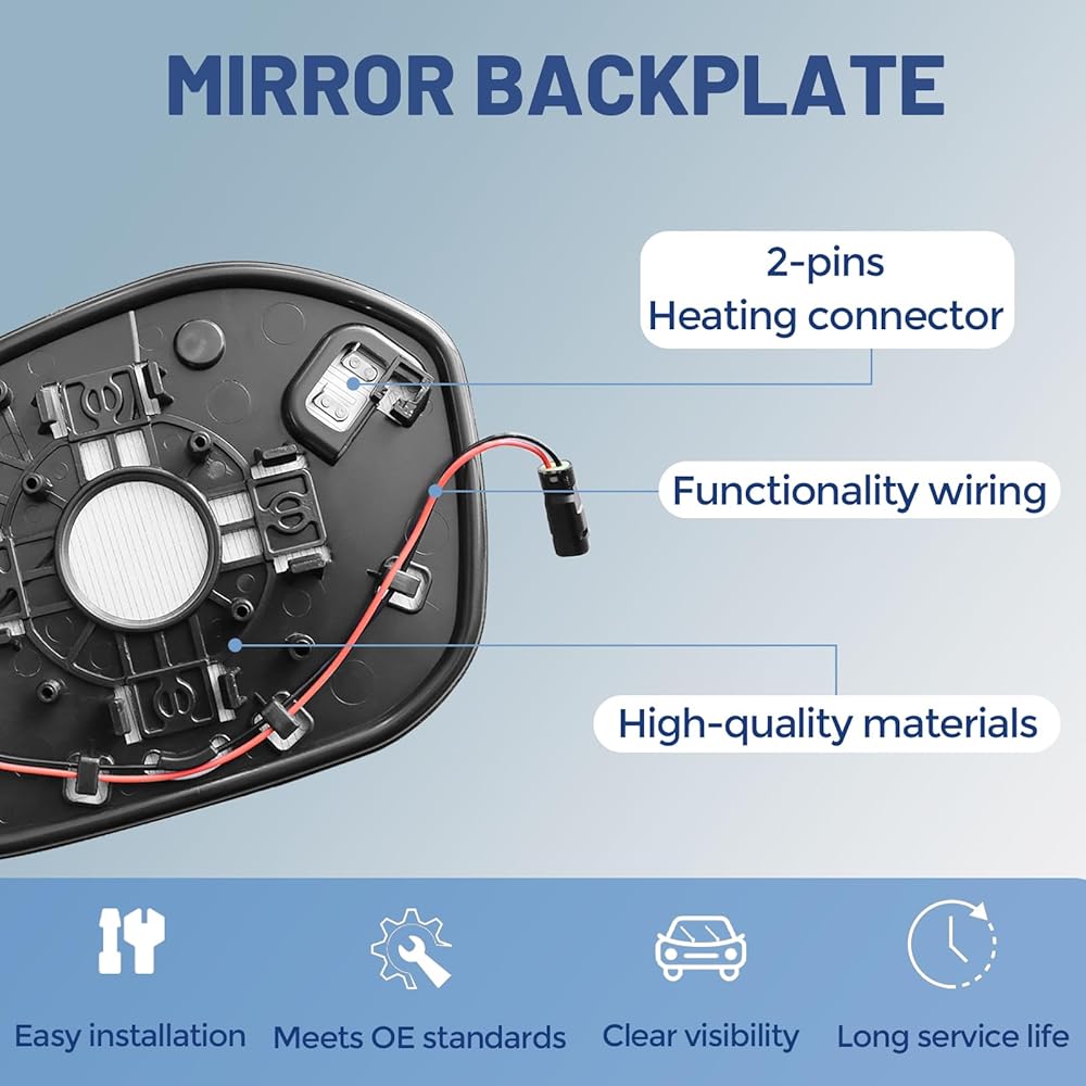[Easy Installation]: Quick 5-minute installation and few tools required. Our mirror is crafted from high-quality materials, providing a clear and scratch-resistant surface that remains intact even after minor impacts. It meets the factory standards for original equipment, ensuring a perfect fit and complete compatibility with the vehicle