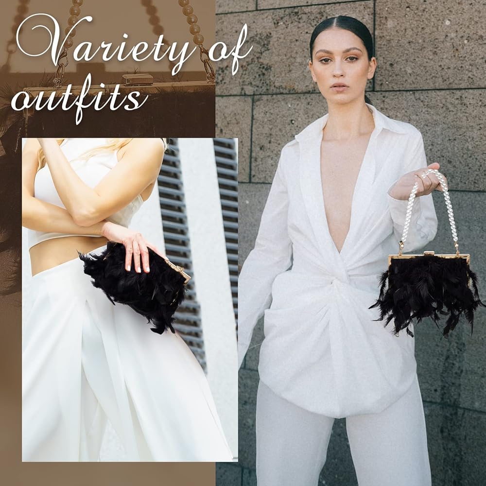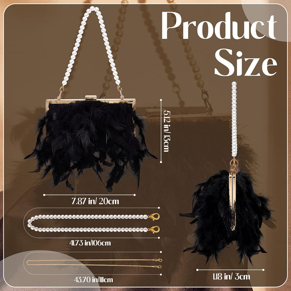 You Will Receive: 1 piece of faux feather purse in white, equipped with 1 piece of pearl strap chain and 1 piece of replacement chain, which are a nice combination to meet your daily or party using and replacing needs