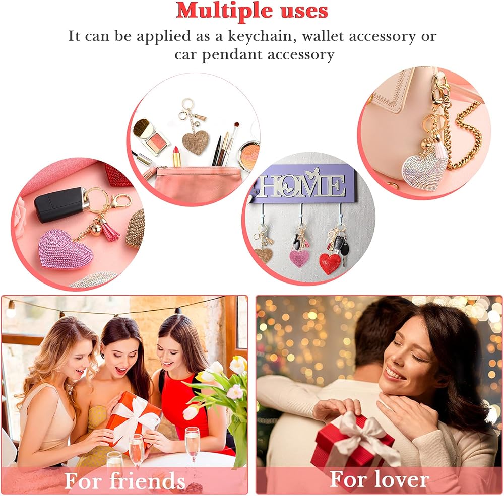 Excellent gift choice: this shiny and stylish heart-shaped rhinestone key chain is popular with girls and can be well matched on many occasions; It is very suitable for parties, Valentine's Day, Mother's Day and other festivals as gifts for family and friends, enough to express your love