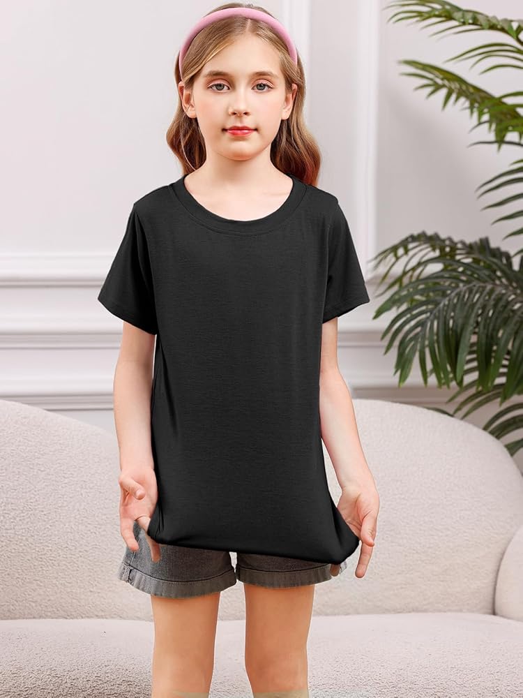 Stylish & Effortlessly Versatile:With a classic round neck and a trendy curved hem, this tee adds a modern twist to any outfit. The timeless solid color pairs easily with shorts, skirts, or jeans, making it a go-to piece for spring, summer, and fall.