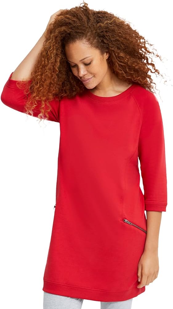 A seasonless tunic with great features. Made from lightweight baby French terry with incredible softness and comfort. Perfect to pair with our bestselling leggings or your favorite skinny jeans. Ribbed detailingRaglan sleeves Slanted front-zip pockets34" length; Hits mid-thighFrench terry; Cotton/polyesterMachine washable.Imported.