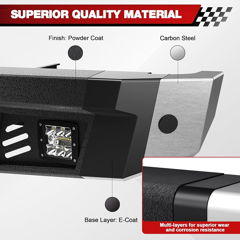 Durable Construction: The f150 front bumper is made of high-quality carbon steel that can withstand impacts better than the factory bumper.