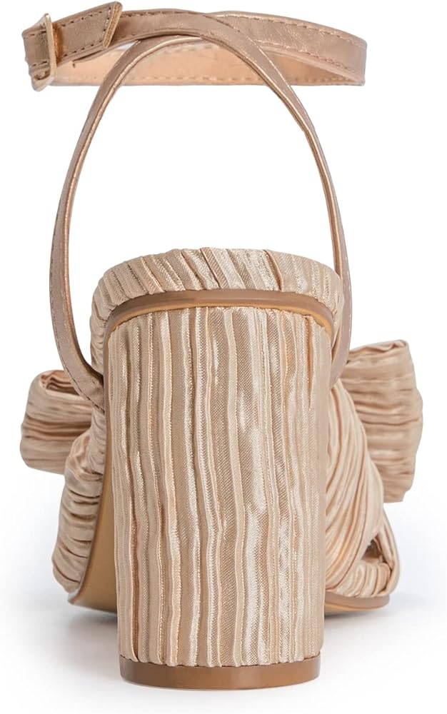 Material: The statement bow and pleated fabric sandals add a sweet, ethereal touch to your look, perfectly blending fashion and femininity.