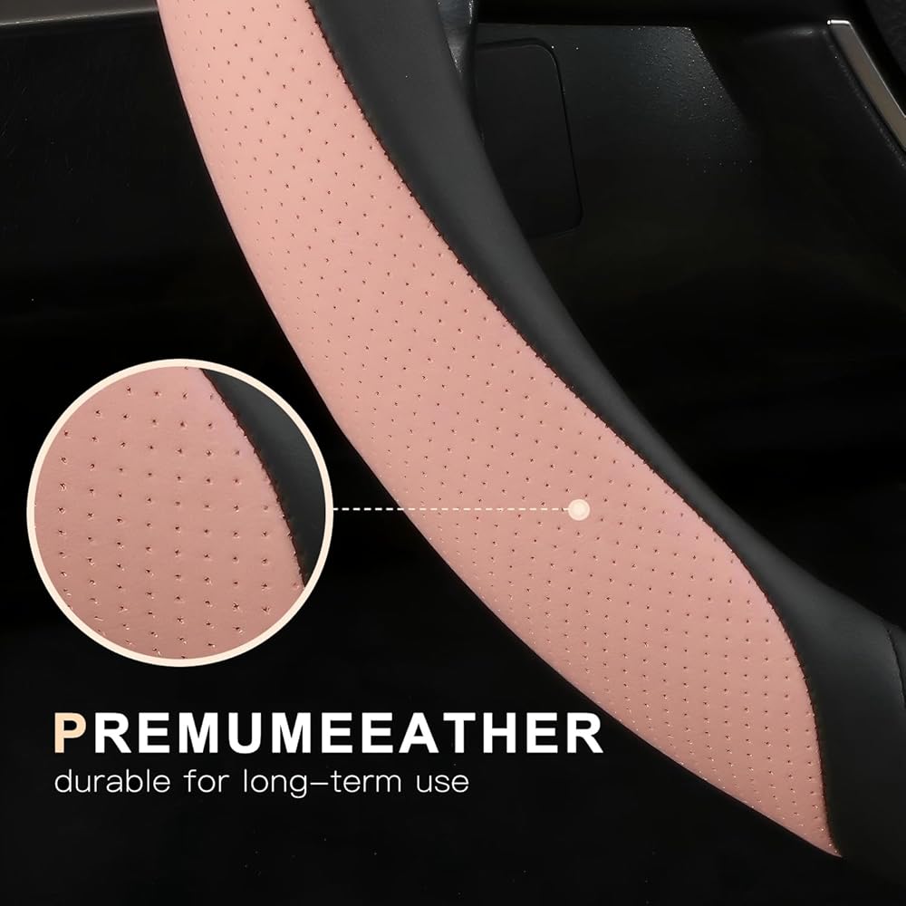 -This car steering wheel cover Made of premium leather material, steering wheel cover is durable and resilient. ensures driving safety.