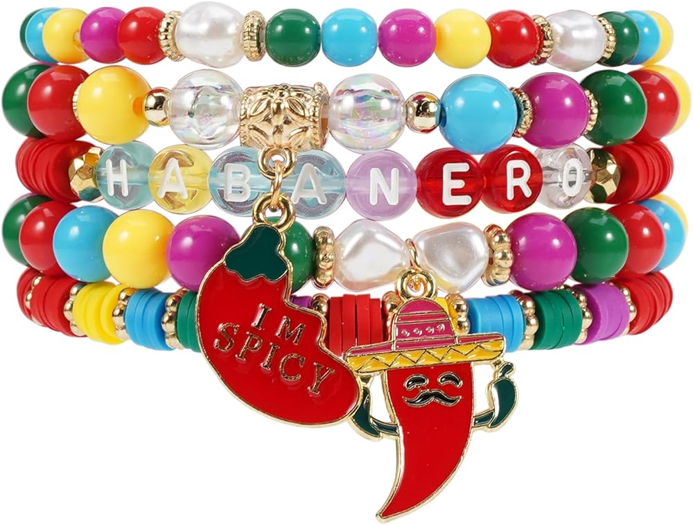 ♥ Mexican Fiesta Bracelets Set: Get into the Mexican spirit with this beaded Cinco de Mayo jewelry set on fiesta party. Whether you are wearing just one or all two piece, stack them together or layering them with your other summer bracelets for an added pop of color and ay season.