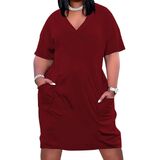 FEATURE - The Plus size sexy summer midi dress features soild color, with Two Pockets, Loose, short sleeve, the V neck design makes you look more sexy, chic, The pockets are very useful, Casual Tshirt drees easy to dress up and down.