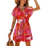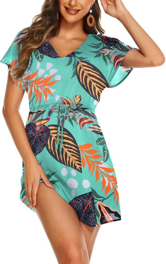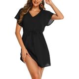 SOCIALA Women's Short Sleeve Crochet Top Side Split Hollow Out Mesh Bathing Suit Cover Ups Dress Swimwear S-XL