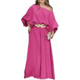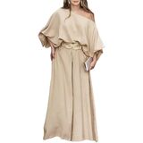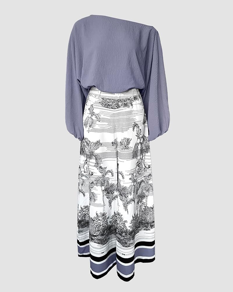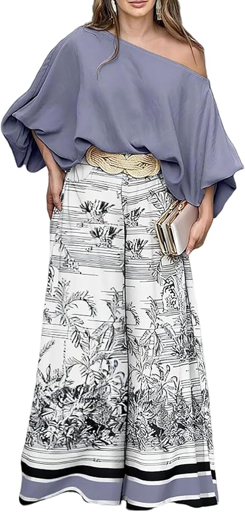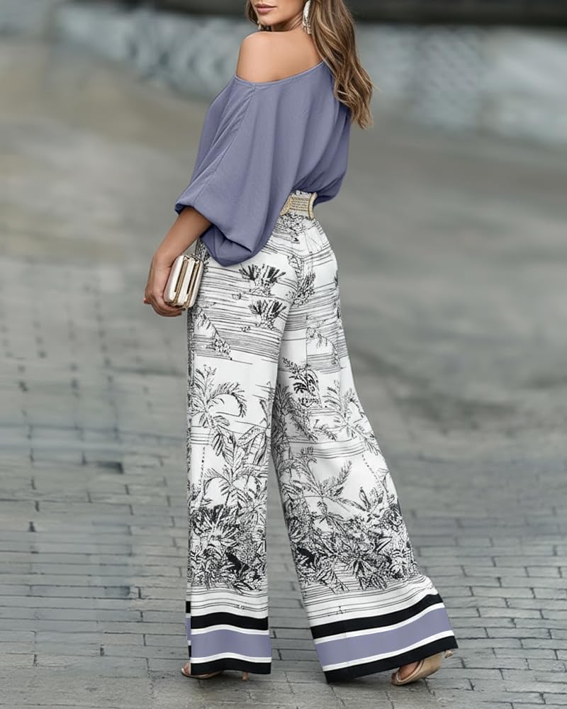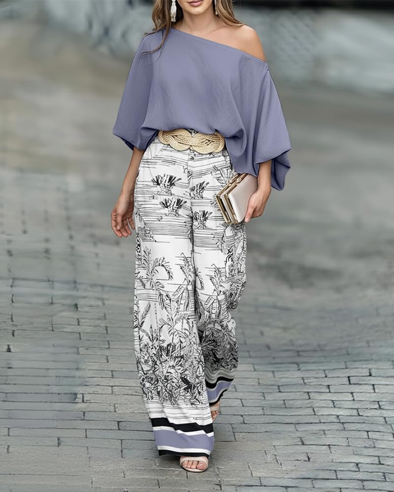 Stylish Two-Piece Set for Summer: This off-shoulder top and flowy wide-leg pants set is a chic and comfortable choice for women's summer outfits, perfect for vacations, beach trips, and casual outings. Note: The set does not include a belt—feel free to pair it with your own.