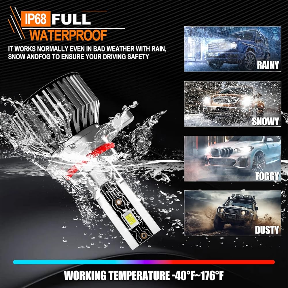 >50000 Hours Lifespan: TXBILMOO's ligth bulbs feature a cold-pressed aluminum heat sink and a 18,000 RPM cooling fan, which together provide an efficient and reliable cooling system, significantly extending the lifespan of the bulbs to up to 50,000 hours