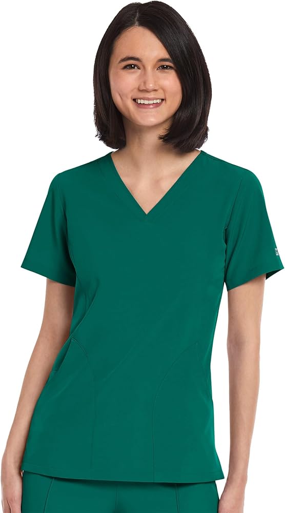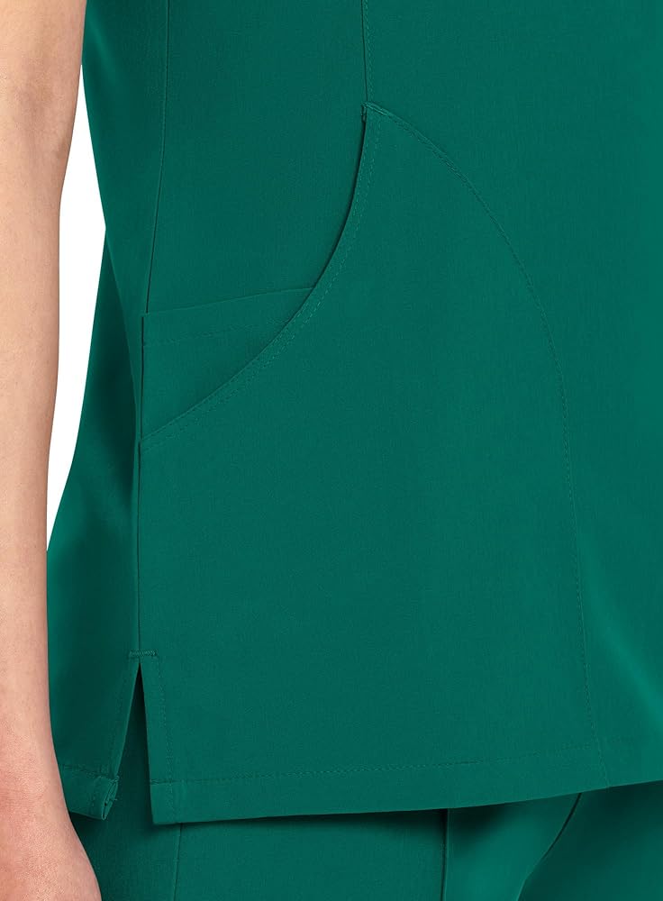 Elevate your professional wardrobe with our Maevn Women's Three-Pocket V-Neck Top in Hot Pink. This fitted, short-sleeved top features a stylish V-neck collar and three convenient pockets - two curved patch pockets at the side seam and one inner cell pocket for secure phone storage. Crafted from a soft, stretchy cotton blend, it ensures all-day comfort while maintaining a polished, professional appearance. The top's front princess seams and back darts create a flattering silhouette, making it perfect for healthcare professionals and comfort-conscious women. Measuring 26.5 inches in length, it's suitable for all seasons. Machine washable for easy care.