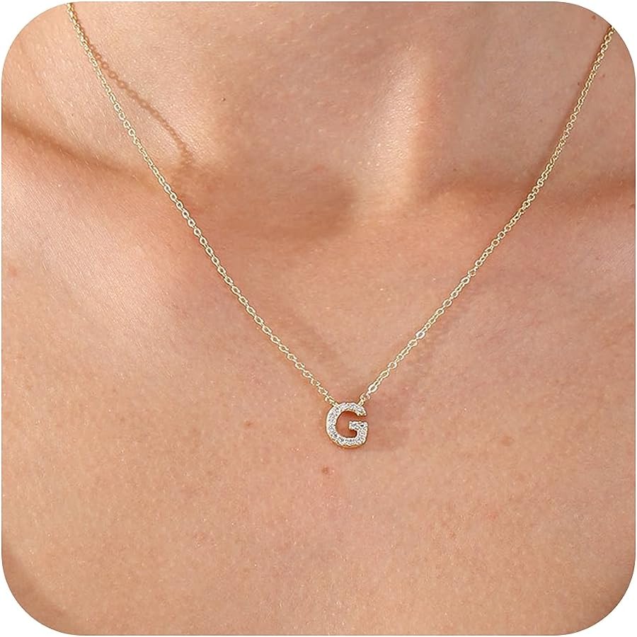 Gold Initial Necklace: The Initial A Necklace inlaid with AAA cubic zirconia is definitely a wonderful gift, the letters are tiny, delicate and elegant enough to match any outfit.