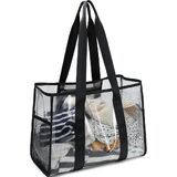 Beach Tote Size: L/16.1 x H/12.2 x W/7.08 IN, large clear tote bag. Generously spacious, it easily accommodates towels, sunscreen, a paperback, and more, for easy packing.