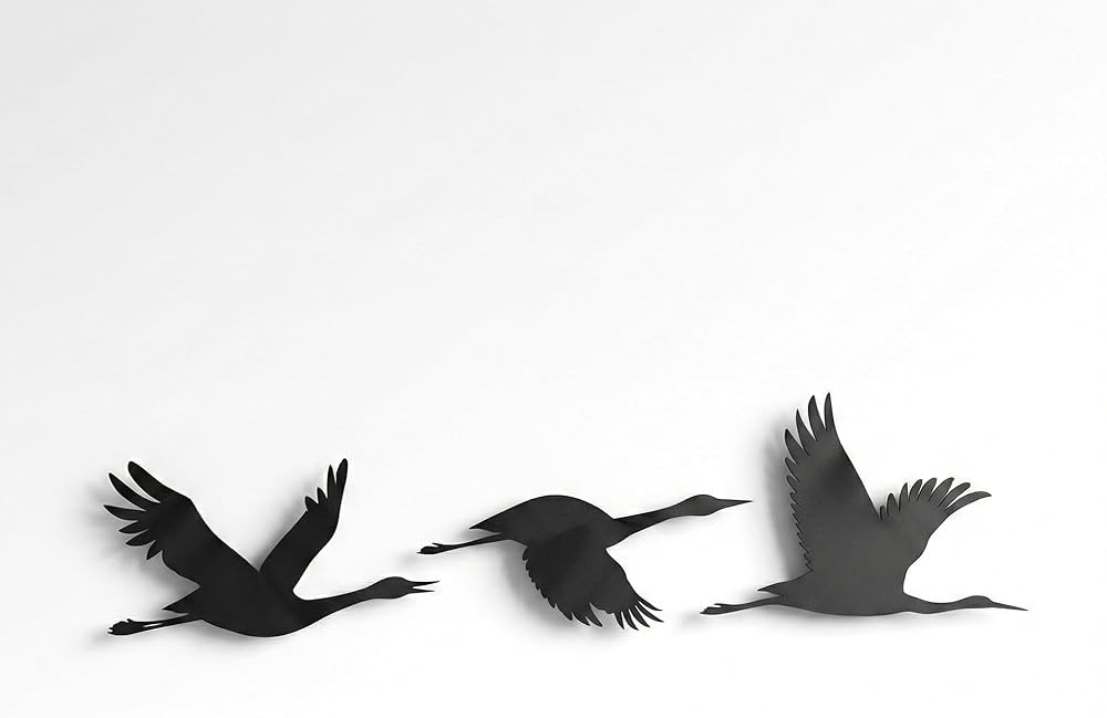 - Metal Wall Art, Cranes Birds Decor, Set of 3 - 6 - 9 Options