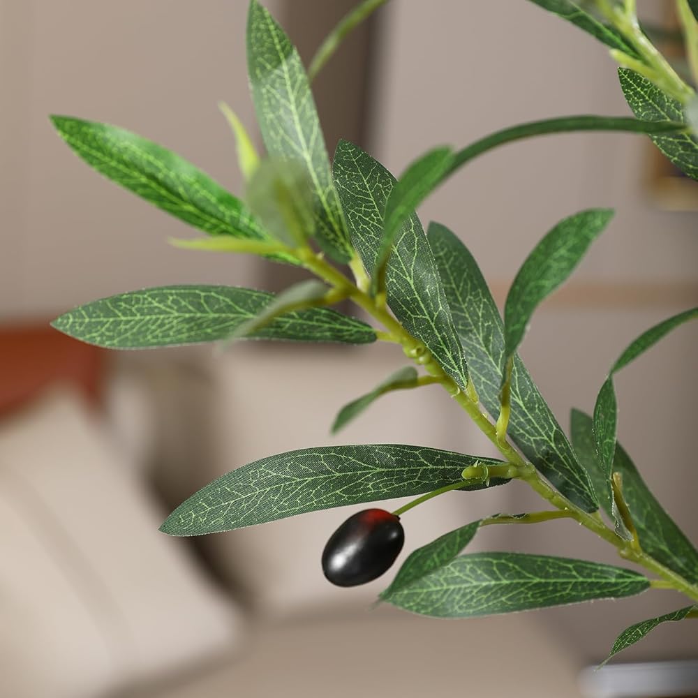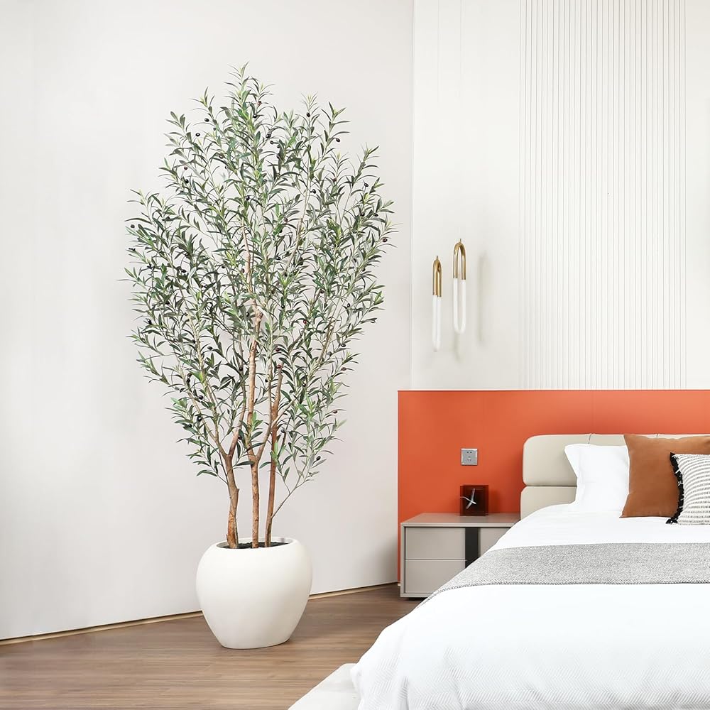 Artificial Olive Tree, 8FT Tall, Faux Olive Trees with Natural Wood Trunk & Lifelike Fruits, Indoor, White Tall Planter, Home Balcony Office Living Room Decor