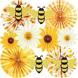 🌸Paper Flower Decorations: The hanging decor includes 11PCS large paper flowers and paper fans, crafted from high-quality crepe paper.It comes with paper clips and glue,help you to keep the shape of the flower and reuse it multiple times.Enjoy their beauty at multiple gatherings and occasions.