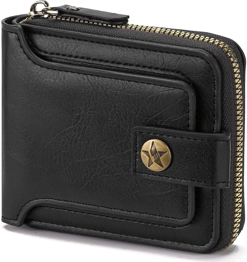 Storage Capacity: This bifold wallet includes 10 card slots to hold credit cards, debit cards, personal cards and more. There are also 1 front zipper pocket, 1 clear ID windows, 1 bill compartment and 1 zipper coin pockets