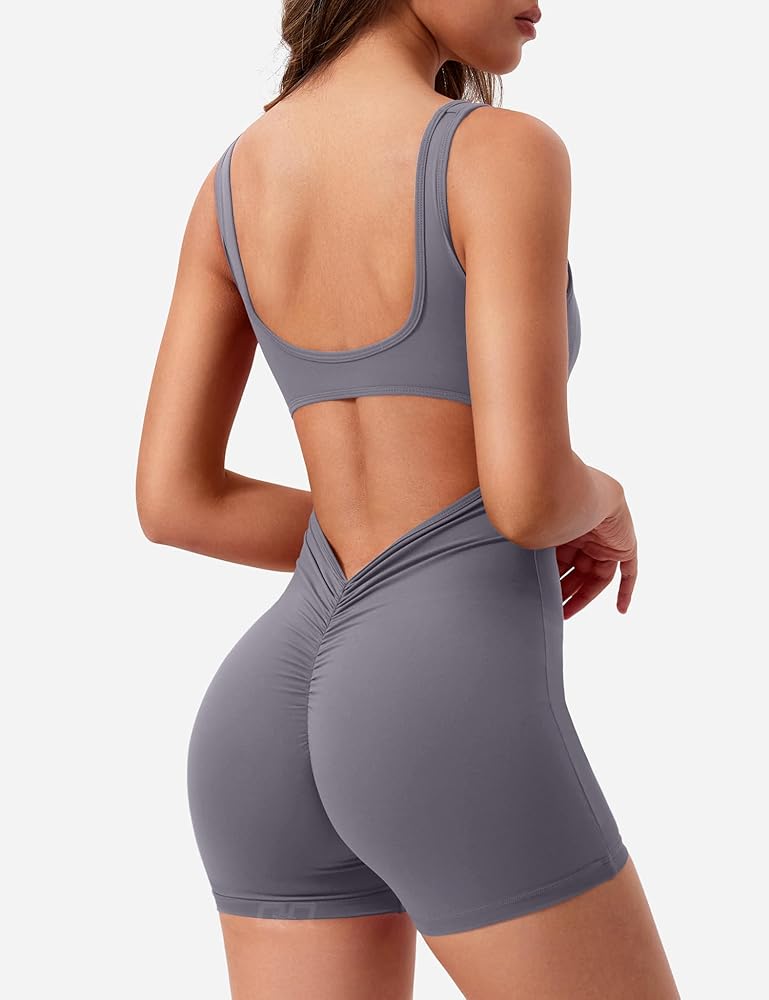 4 Way Stretch Fabric: The open back jumpsuits made of breathable, skin-friendly, high-stretch and moisture wicking fabric. 4-way stretch promotes both the compression and contouring to your body