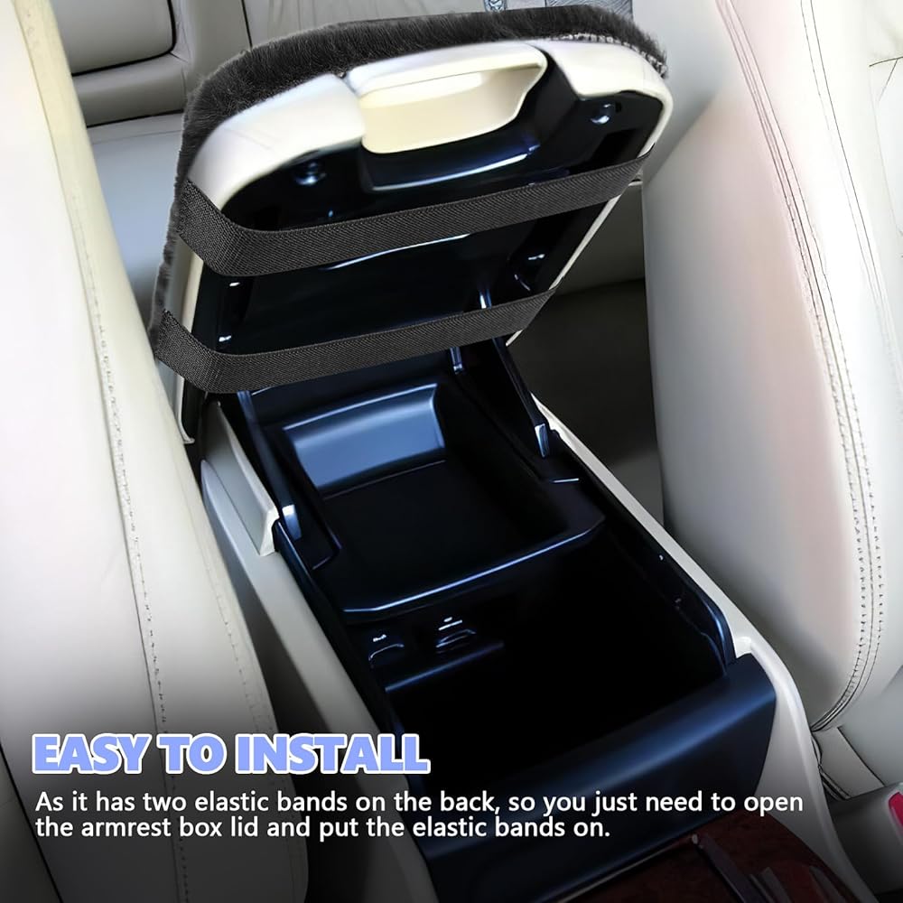 【Easy to Install】: Installing this armrest box pad is easy, as it has two elastic bands on the back, so you just need to open the armrest box lid and put the elastic bands on. It installs securely and will not slide or shift easily. Moreover, it will not hinder the normal opening and closing of the armrest box lid.