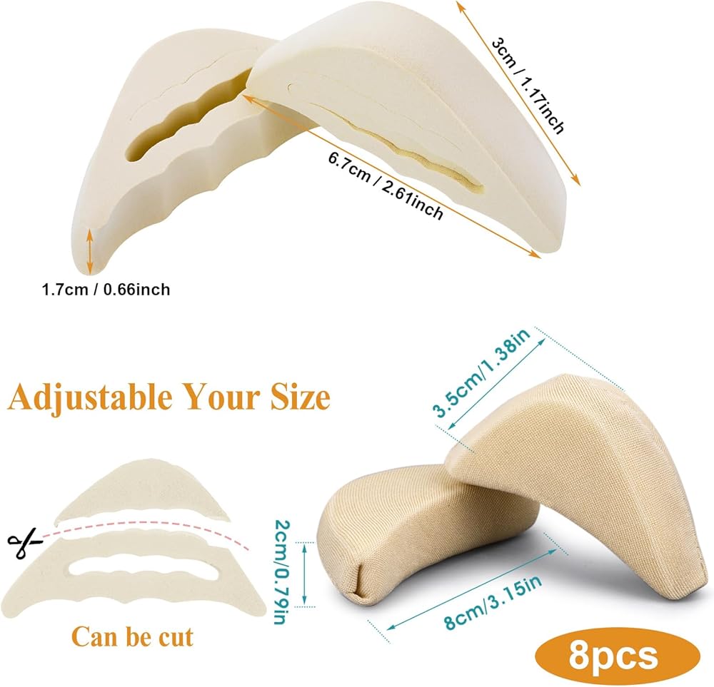 【Reusable】Foam shoe inserts are designed for men and women, and foot brace shoe Pads are suitable for all types of shoes, including sneakers high heels work shoes. Toe pads are washable and reusable, and toe pads for heels ensure long-term use