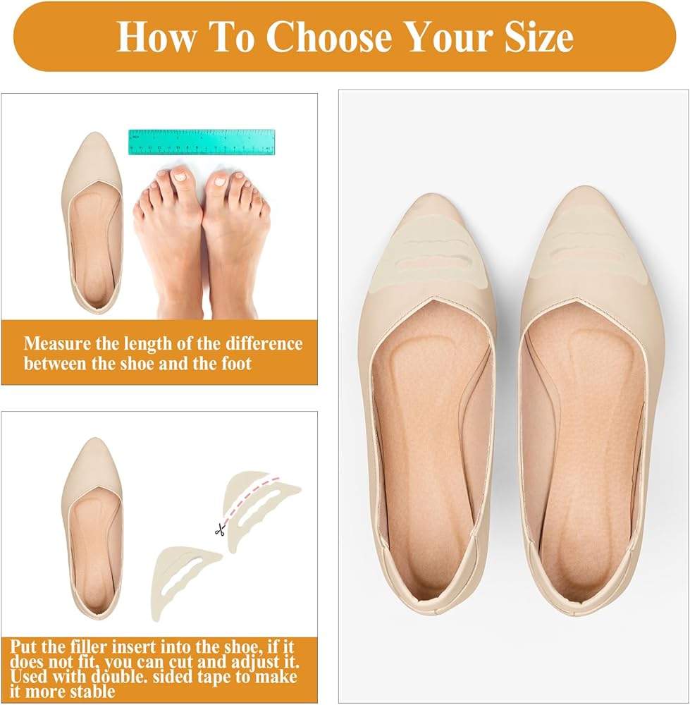 【Non-Slip】Shoe filler for too big shoes women is designed to make oversized shoes fit comfortably, shoe toe inserts provide comfort and prevent slipping. Shoe filler inserts are suitable for high heels loafers boots flats sneakers