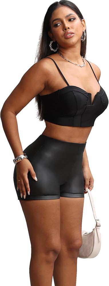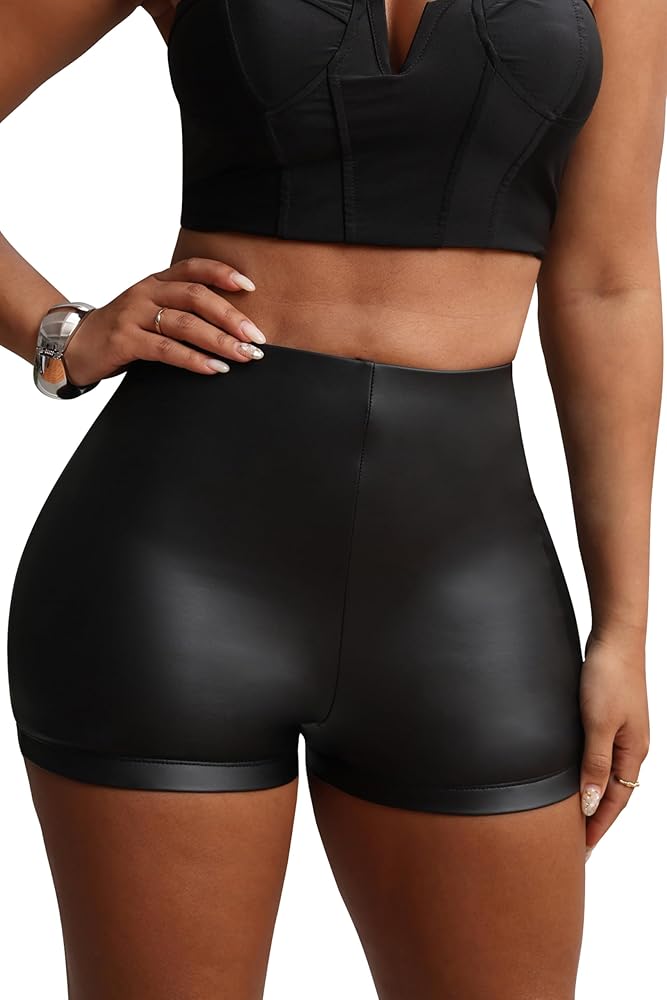 All-Day Comfort - The Black Faux Leather Shorts Breathable, stretchy material moves with you, perfect for dancing, parties, or everyday wear while maintaining its shape.
