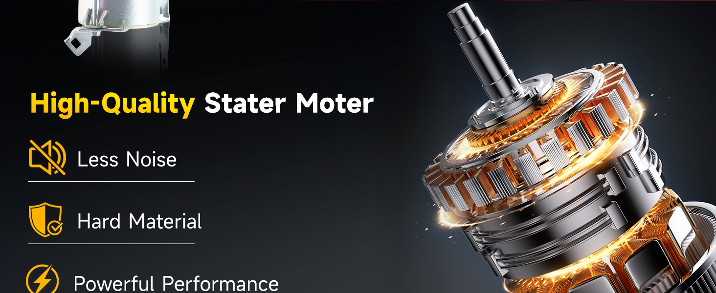 【Durable Construction】The starter motor is built with durable materials, resulting in a long lifespan and the ability to withstand frequent start-stop cycles. Drive End Housing made of Aluminum-Alloy Die-Castings for strong corrosion protection. Plunger made by CNC machining to ensure accurate and precise size. Solenoids and armatures use 200°C high-temperature resistant copper wire to guarantee longevity. Planetary Shaft and Starter Drive engineered and tested for maximum durability.