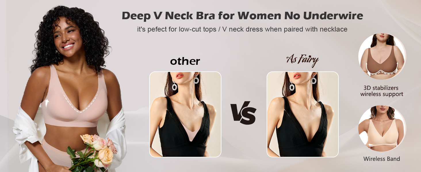 Deep V Plunge Bralettes: Our comfort low cut v neck bra pefect for any clothes like t-shirts tops dress as everyday bra. The seamless Deep V bras are particularly friendly for spring summer fall when you wearing under low-cut tops and dresses. this bra hugs your curves flawlessly, offering zero gaps, slippage, or bunching for a silhouette as seamless as the ocean's surface.