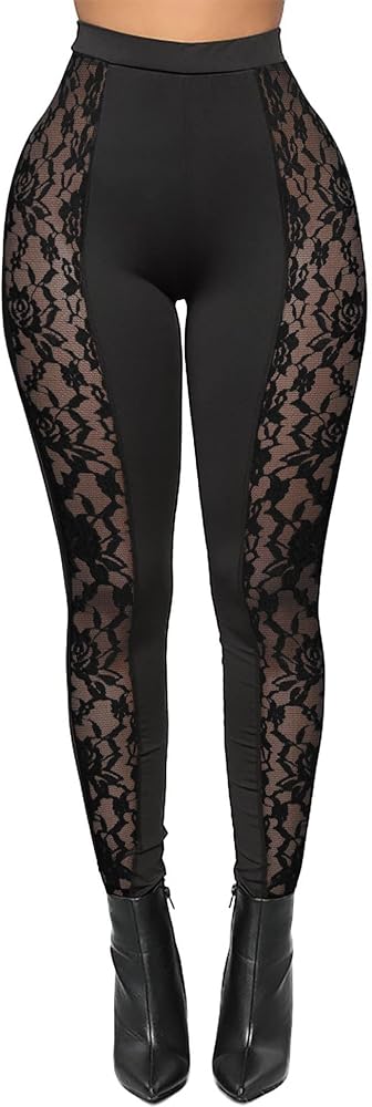 Womens Sexy Skinny Mesh Sheer Leggings Stretch Party Club Streetwear