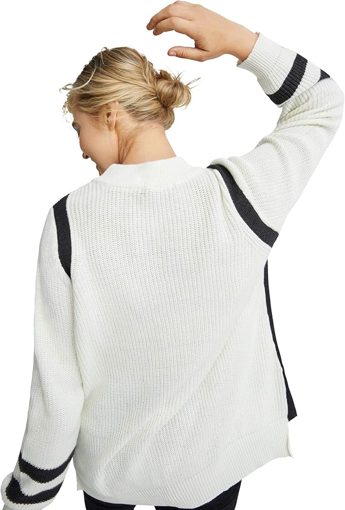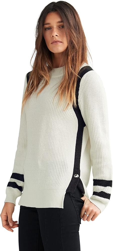 Varsity-inspired contrast stripes trim the edges of this ribbed knit pullover create a sporty-chic look.