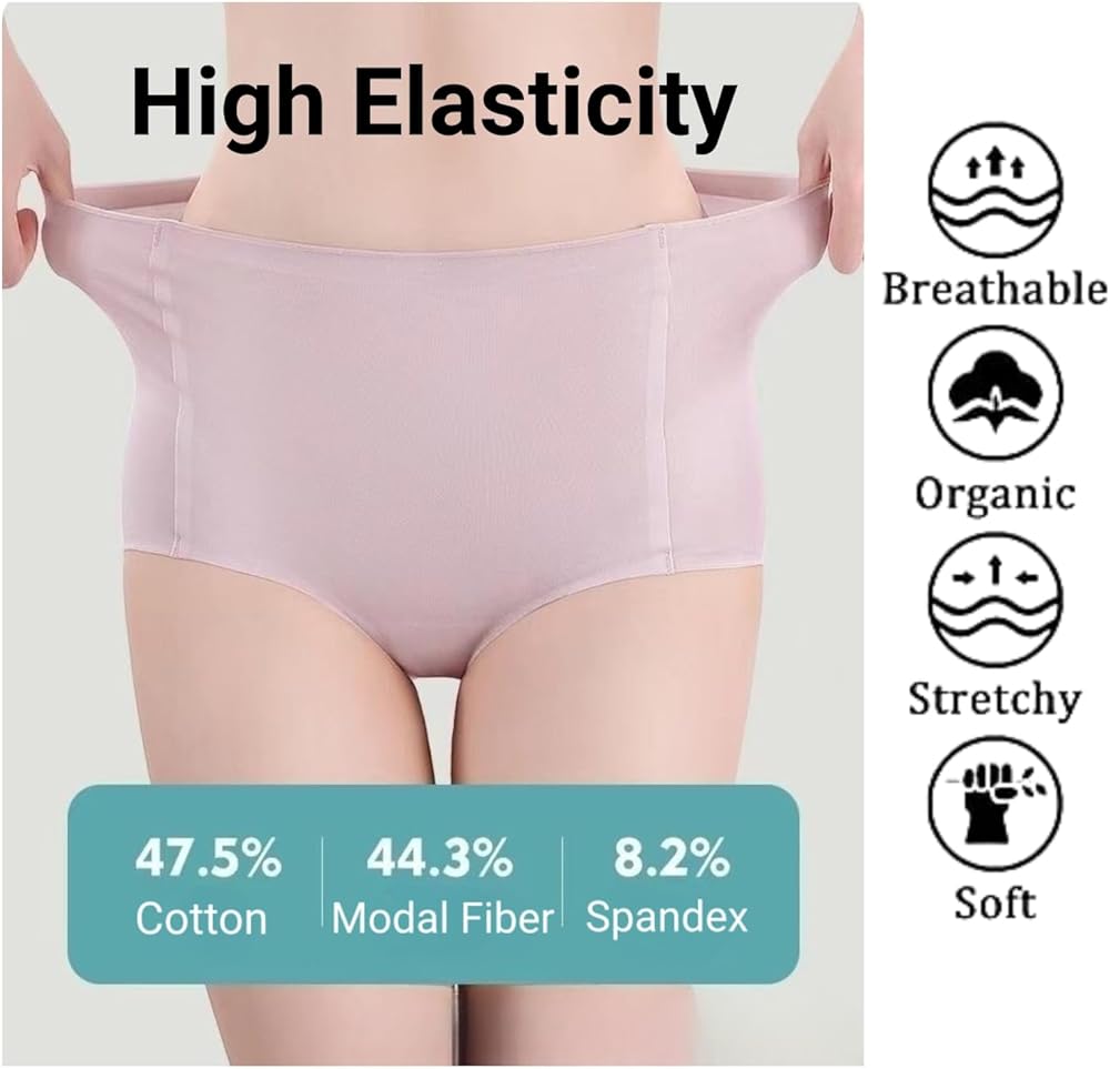 STRETCHY COVERED WAISTBAND: Soft stretchy fabric covered waistband sits right at the waist. No rolling or bunching, with no compression but perfectly snuggish. The high rise underwear offers moderate tummy support and reduces the appearance of muffin top.