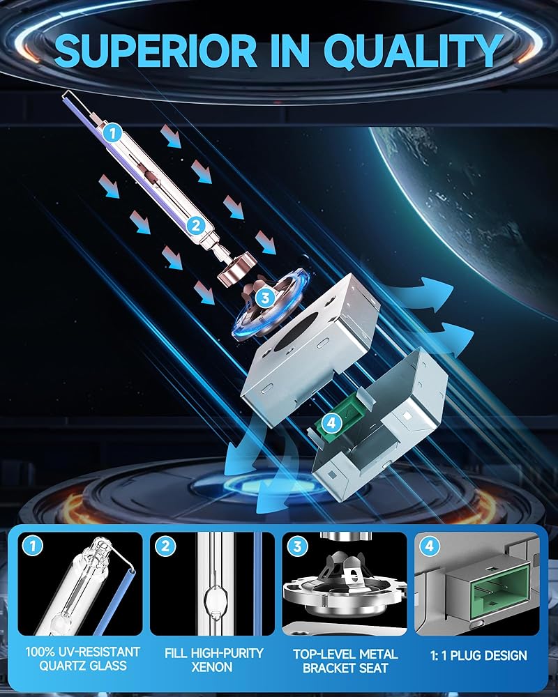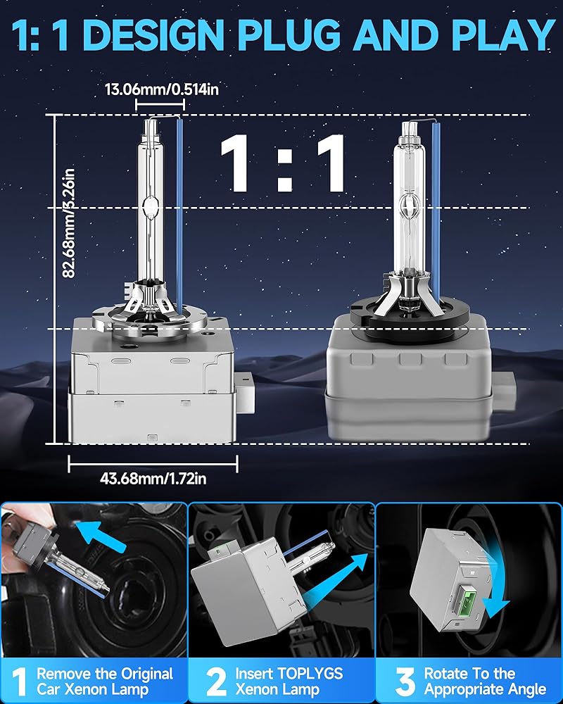【Quality Assurance】D3S bulb is produced according to international standards and has passed multiple test certifications such as CE, FCC, ROHS and DOT. It is produced in strict accordance with the production specifications and quality control requirements of automobile manufacturers to ensure long-term stable and reliable performance