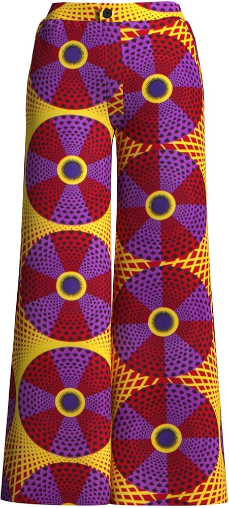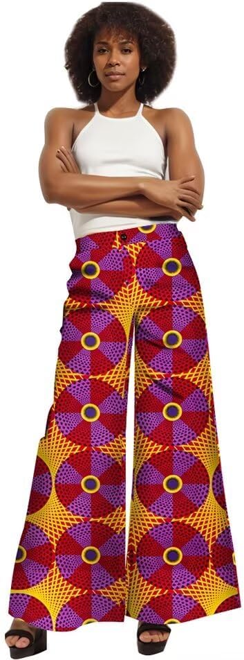 【SPECIAL DESIGN】- African floral print, wide leg, A-line style, side pockets, high waist, vibrant colors, flared, zipper closure, loose fit, stylish, elegant, palazzo pants, long trouser.