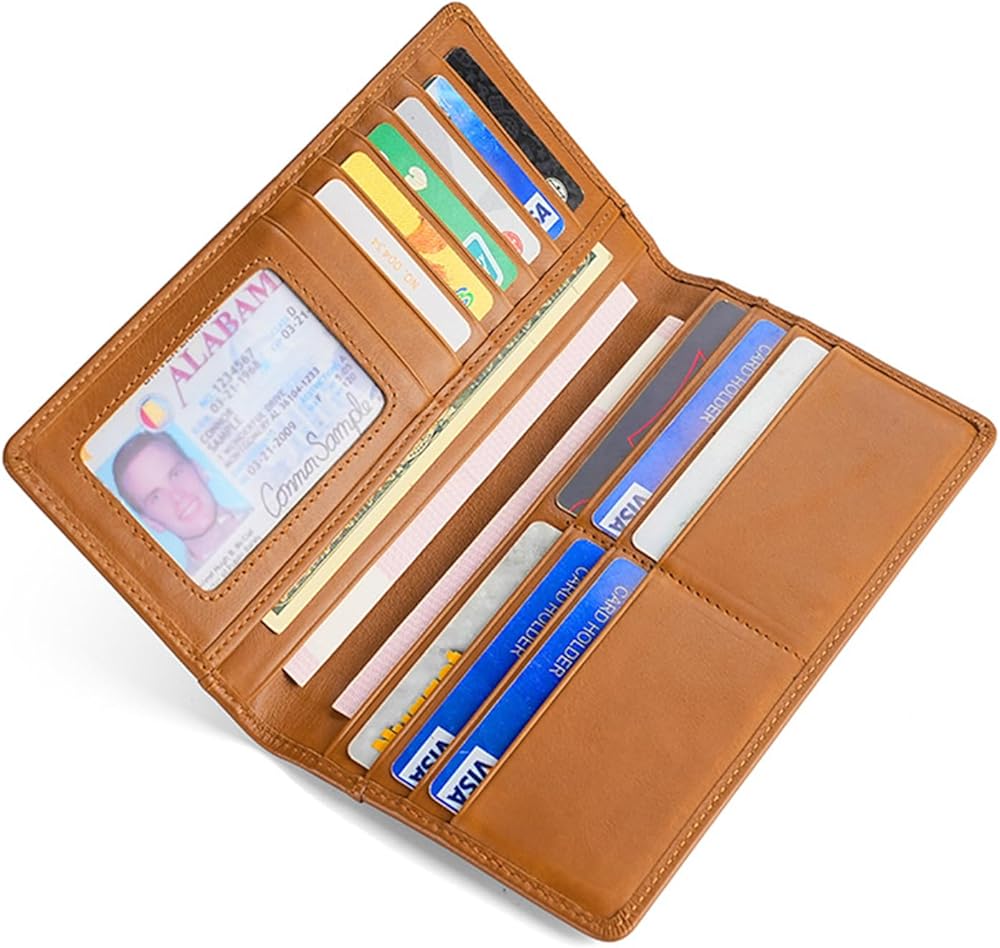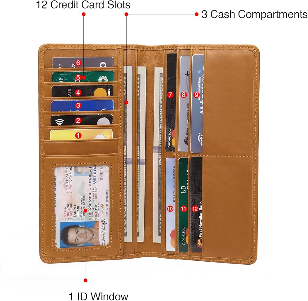 Bifold Men's Wallets-There are 12 card slots, 1 clear ID window, 2 full-length bill compartments, and 1 zipper hidden bill/coins pocket. Plenty of space for your needs
