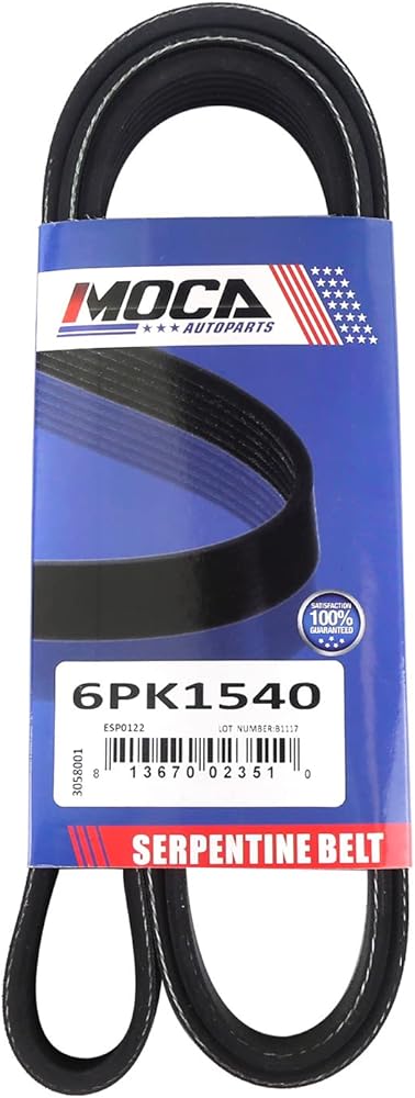 MOCA Serpentine Belt Without AC 6PK1540 Fits 2001-2006 for BMW 325Ci 2.5L & 1998-2000 for Chevrolet Prizm 1.8L & 1998-2008 for Toyota Corolla 1.8L & 1993 for Asuna Sunfire 1.8L