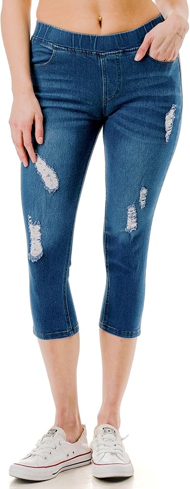 Women's capris featuring comfy elastic waistband in a pull-on design for easy dressing and styling without the bulk;No dreaded muffin top in these jeggings