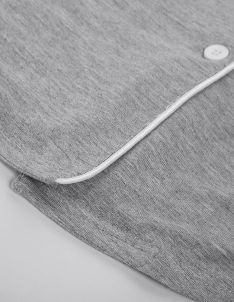 This super soft lapel collar pajama top with irregular high-low curved hem is designed to add a sense of fashion. The chic, classic and mid thigh length design makes you look young and energetic