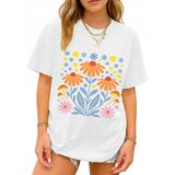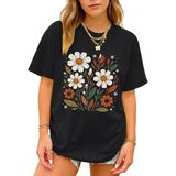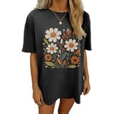 Women's T Shirts Flower Graphic Tees Y2K Aesthetic Short Sleeve Shirts Summer Casual Loose Beach Tops