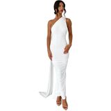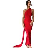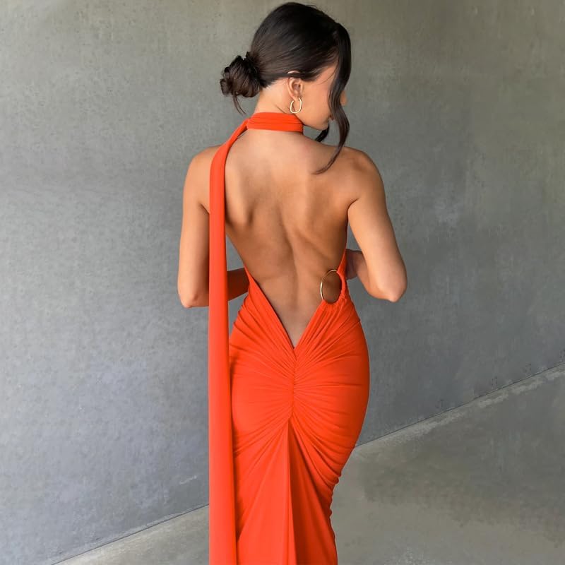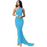 FEATURES: This sexy maxi dress features one shoulder, sleeveless, backless, floor length, ruched back and metal O ring. Soft and stretchy fabric fits your body perfectly and makes you look sexier than ever.