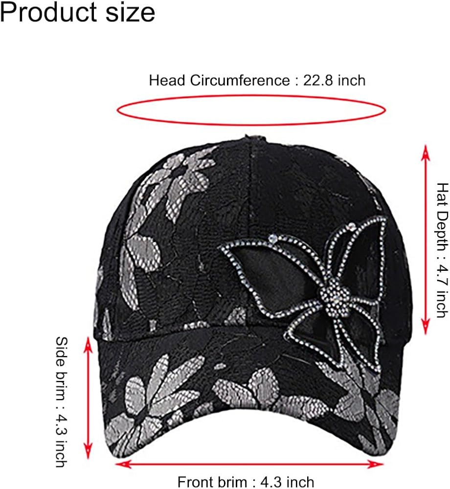 - ELEGANT DESIGN: Lace baseball cap featuring delicate floral embroidery pattern and stunning rhinestone butterfly decorations for a sophisticated look